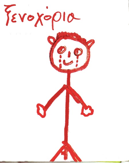 xenos meaning “stranger”. Although in the analysis of children’s drawings stick-figures are usually a sign of avoidance (ibid:106) the young boy’s drawing is eloquently revealing of his deep sorrow being a stranger in a foreign land.