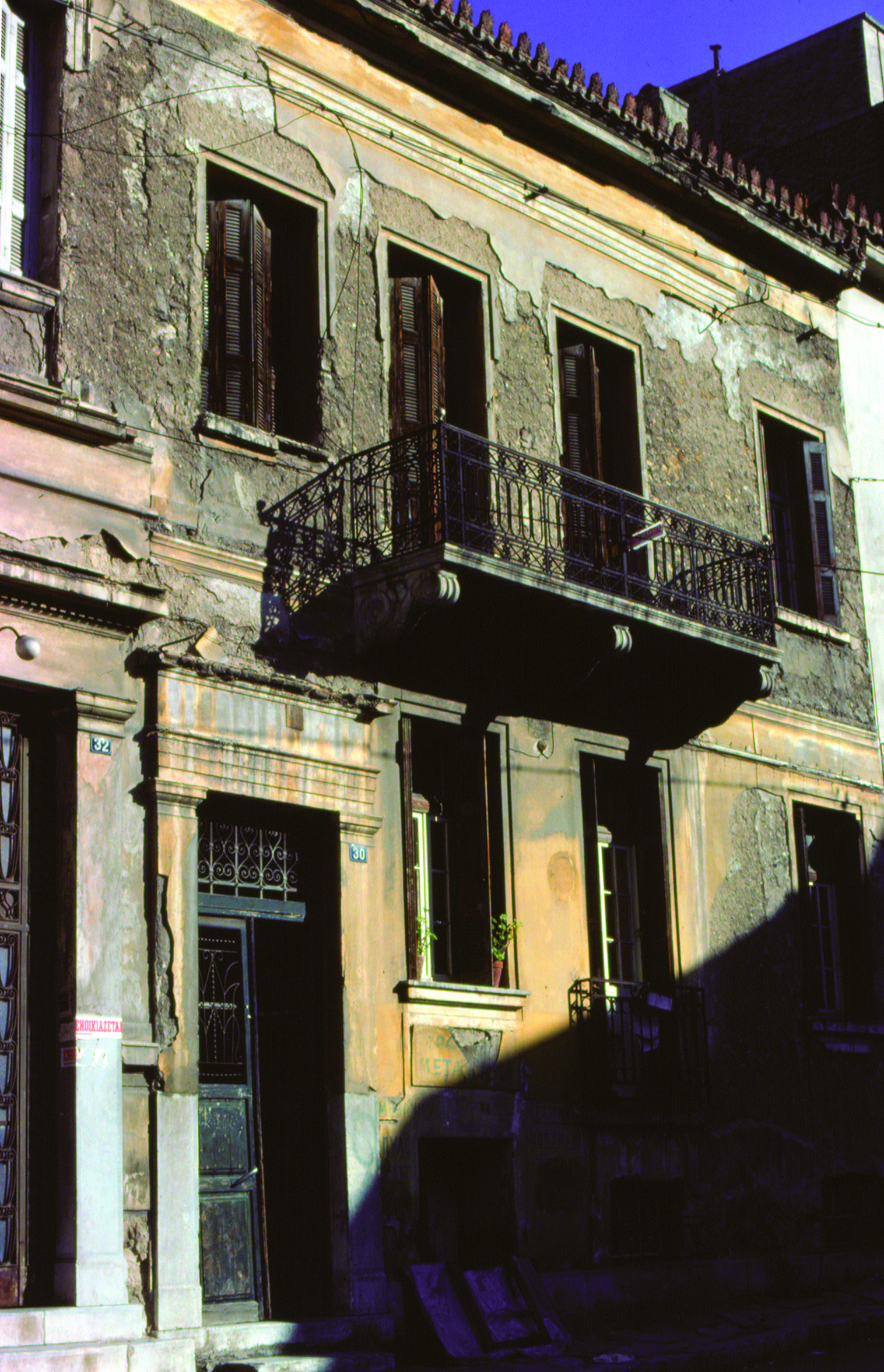I am a child of the center of Athens. I was born in a house that would have been one hundred years old now days, on Epikourou Street – which extends Evripidou Street towards Pireos. Its front was simple, displaying the ornamental forms of neoclassicism. (Figure 1) This wasn’t unusual at all for a turn-of-the-century house, since even the street names do recall ancient Athens. We left there in the 60s for a penthouse on Acharnon Street, between Agios Panteleimonas and Victoria Square.Thirty years later, the Epikourou Street house would become a listed building,