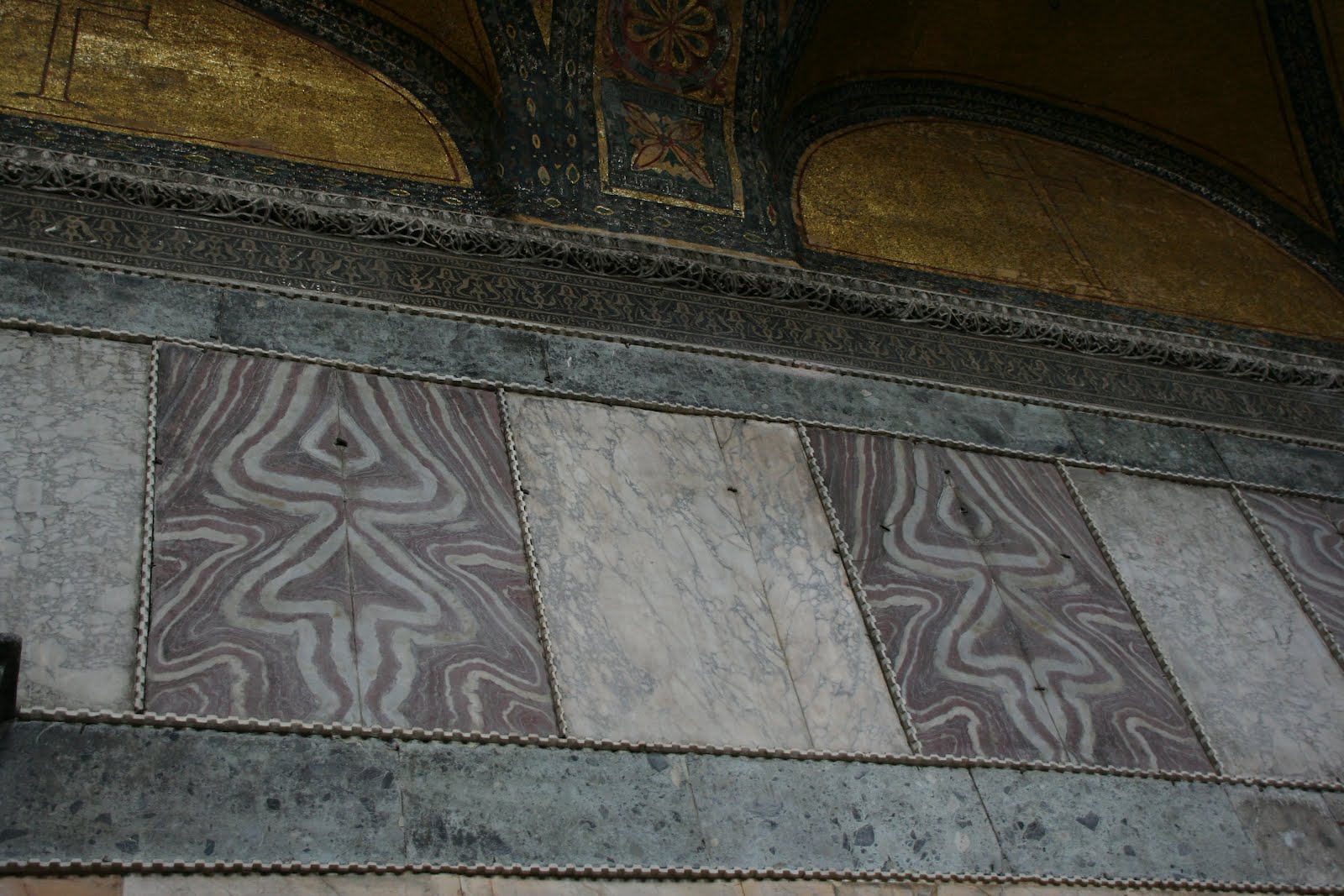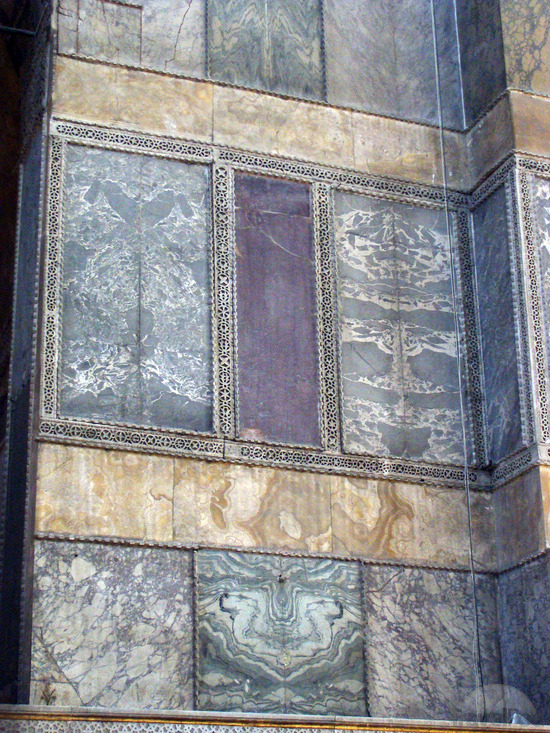 marble panels inside the interior of Hagia Sophia