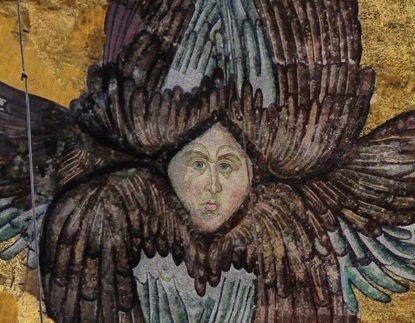 θρόνους καὶ τὰ πολυόμματα καὶ πολύπτερα τάγματα