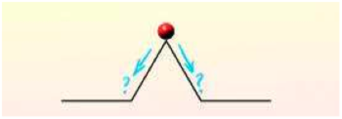 possible equilibrium states (valleys for the dog, stable local hills for the