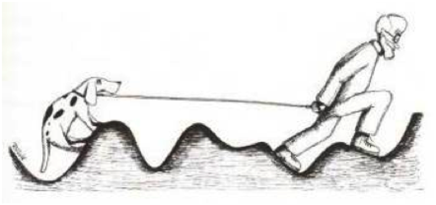 showing a dog being taken for a bumpy walk, reveals the connection (figure