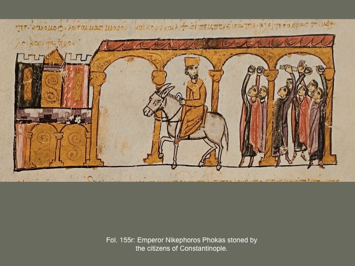 only twice is a mob represented: the stoning of Nikephoros Phokas (figure