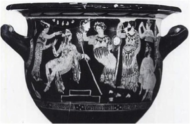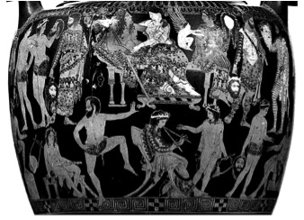Pronomos vase, a red-figure volute krater dated to around 400 BCE, which
