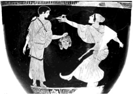 dramatic masks on vase paintings and relief sculpture, and here we have to