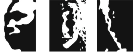 delineating human skin from mask with a pronounced edge separating the two,